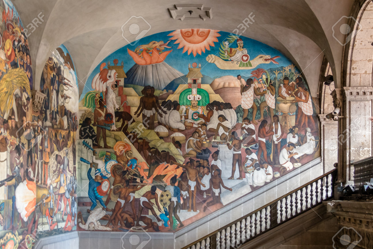 Las Escaleras Del Palacio Nacional Con El Famoso Mural La Historia De México Por Diego Rivera - Ciudad De México, México Fotos, Retratos, Imágenes Y Fotografía De Archivo Libres De Derecho. Image 80457113.